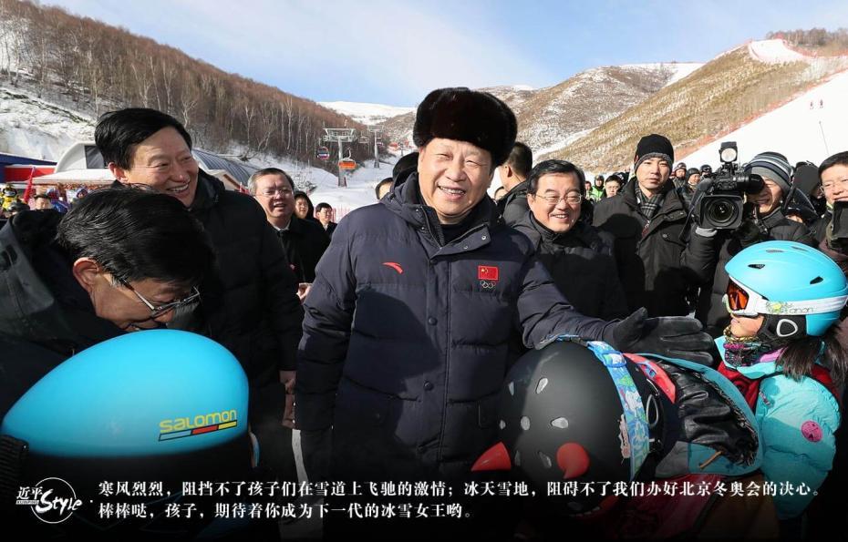 تشجيع الرئيس الصيني شي جين بينغ لفتاة على ممارسة الرياضة الشتوية.