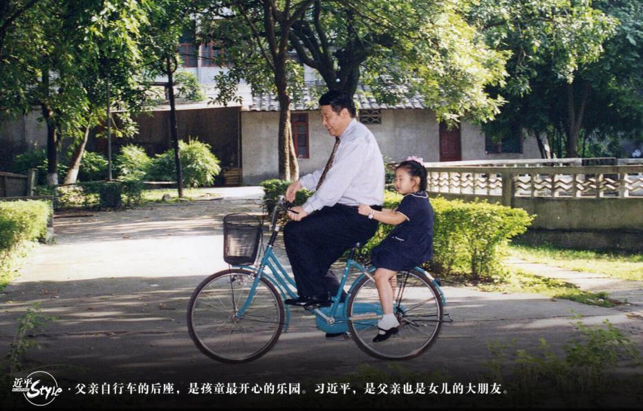 فى هذه الصورة القديمة،ركب شي جين بينغ دراجة وعلى متنها ابنته.ولايعد شي أبوها فحسب بل صديقها الكبير أيضا