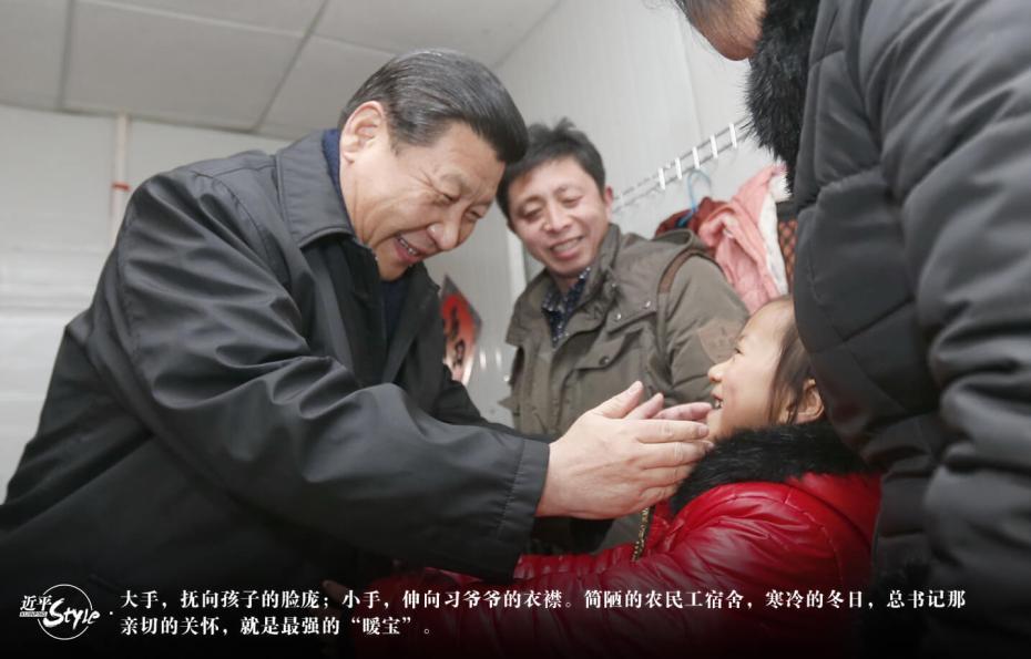 الرئيس الصين شي جين بينغ يزور مساكن العمال المهاجرين فى الشتاء، ويداعب طفلا خلال الزيارة.