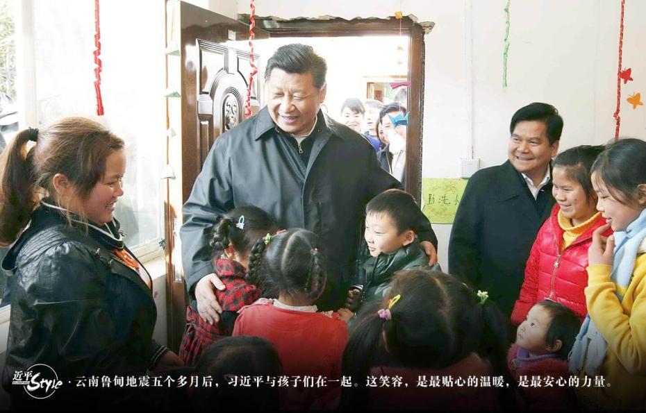 الرئيس الصيني شي جين بينغ يزور ألأطفال فى محافظة لوديان بمقاطعة يوننان بعد مرور خمسة أشهر على وقوع زلزال.