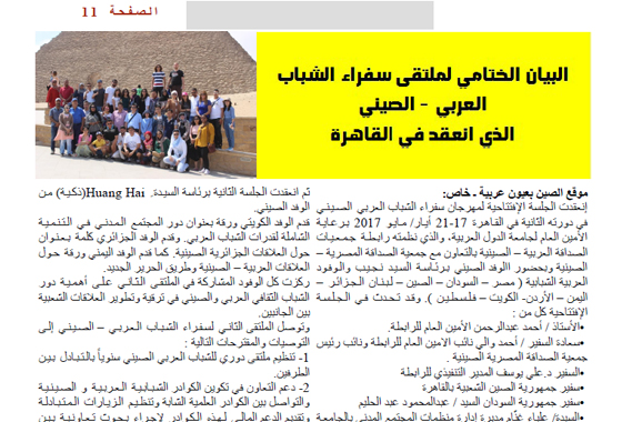 البيان الختامي لملتقى سفراء الشباب العربي – الصيني الذي انتعقد في القاهرة (العدد 70)