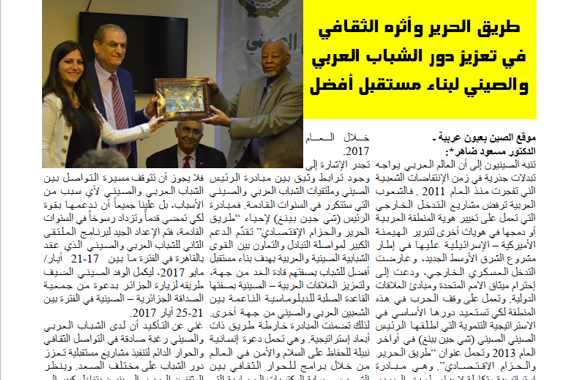 **كلمة ألقيت في جلسة ملتقى الشباب الصيني – العربي الذي عقد بالقاهرة في الفترة ما بين 17 – 21 أيار 2017 .