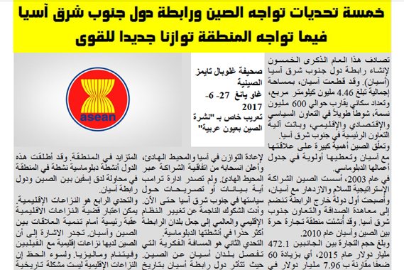 خمسة تحديات تواجه #الصين ورابطة حول جنوب شرق آسيا فيما تواجه المنطقة توازناً جديداً للقوى (العدد 74)