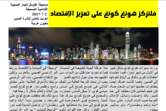 ومع ذلك، لقد حافظت هونغ كونغ على تفردها. و يضمن مبدأ “بلد واحد ونظامان” أن تواصل المدينة لعب دور “الوسيط السياسي” بين البر الرئيسي والغرب. ومع تكاملها على نحو متزايد مع اقتصاد البر الرئيسي، ستنضج ظروف هونغ كونغ أكثر وتتعزز فرصها لتصبح مركزاً مالياً لآسيا والمحيط الهادئ. يجب أن تتخلص المدينة من الاضطرابات السياسية وتركز على تعزيز الحيوية الإقتصادية في أقرب وقت ممكن. فمشاكل ارتفاع أسعار العقارات والبطالة والقضايا المعيشية الأخرى شائعة وسط المدن المتقدمة. ومع دعم البر الرئيسي، سيكون لدى هونغ كونغ أفضلية في معالجة هذه المشاكل. يجب أن تسعى المدينة للاستفادة من إمكاناتها وألا تشتت بأجندات سياسية تروج لها قلة من الناس.