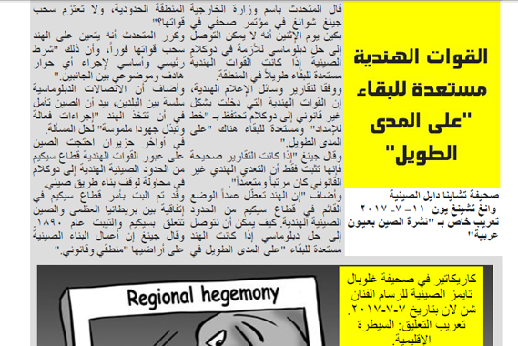 ووفقا لتقارير وسائل الإعلام الهندية، إن القوات الهندية التي دخلت بشكل غير قانوني إلى دوكلام تحتفظ بـ “خط للإمداد” ومستعدة للبقاء هناك “على المدى الطويل”.