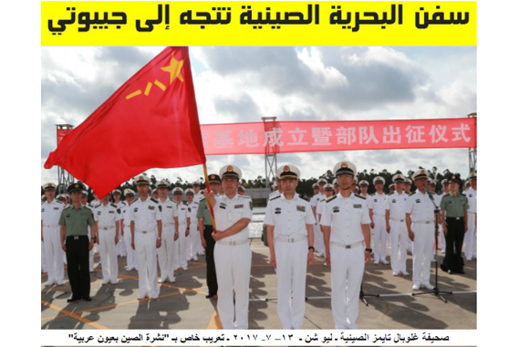 قال خبراء صينيون إن أول قاعدة دعم خارجي للصين في جيبوتي شرق أفريقيا تختلف عن القواعد العسكرية للدول الأخرى في نطاقها ووظيفتها وطبيعة السفن الموجودة فيها، ولذلك ينبغي على وسائل الاعلام الغربية ألا تثير نظرية التهديد الصيني.