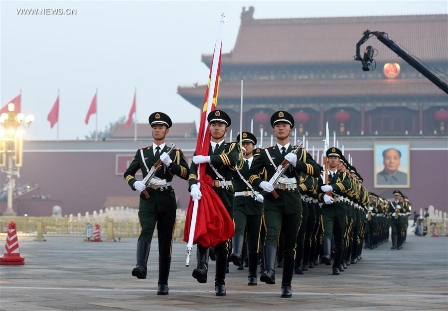 حشود شعبية كبيرة تشارك بمراسم رفع العلم الوطني في ميدان تيان آن مون بمناسبة العيد الوطني الصيني