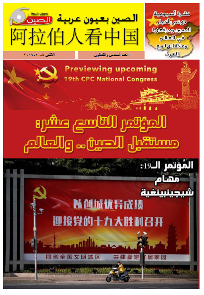 صدر العد السادس والثمانون من “نشرة الصين بعيون عربية” وهو عدد مخصص للمؤتمر الوطني التاسع عشر للحزب الشيوعي الصيني الذي سينعقد في بكين بعد أيام.