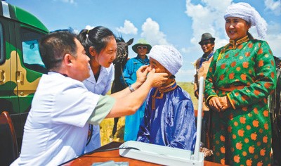 صورة: الفريق الطبي جاء إلى المنطقة الرعوية بلواء أبغا بمنطقة منغوليا الداخلية ذاتية الحكم لتوفير العلاج الطبي للرعاة المحليين. المصور: وو يونغ، مراسل بصحيفة الشعب اليومية