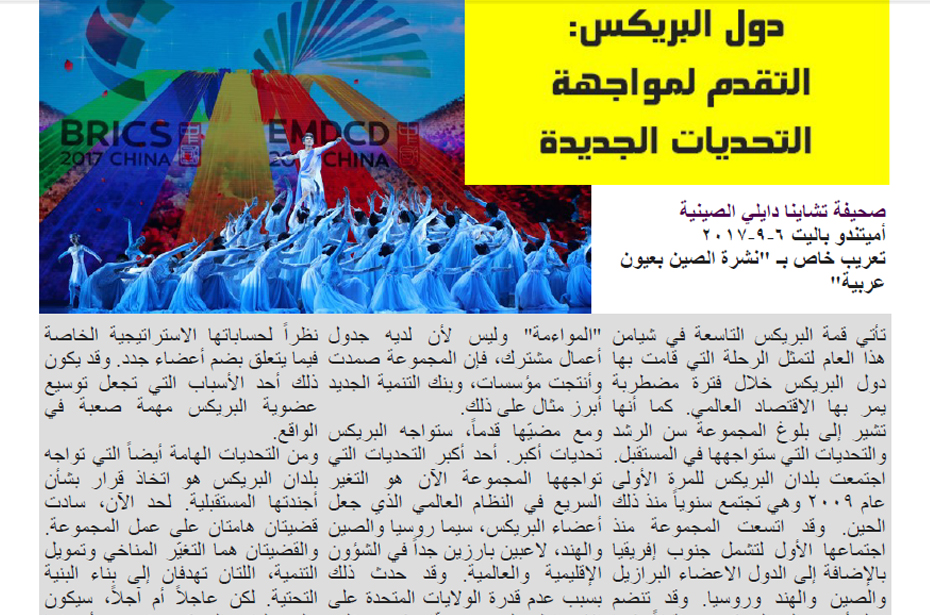 تعريب خاص بـ “نشرة الصين بعيون عربية”