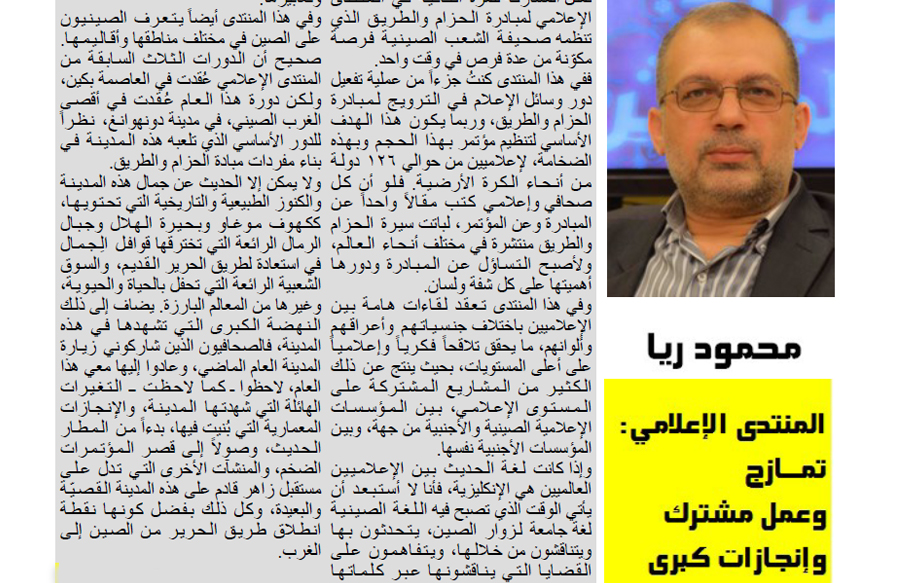 تمثل المشاركة للمرة الثانية في المنتدى الإعلامي لمبادرة الحزام والطريق الذي تنظمه صحيفة الشعب الصينية فرصة مكوّنة من عدة فرص في وقت واحد.
