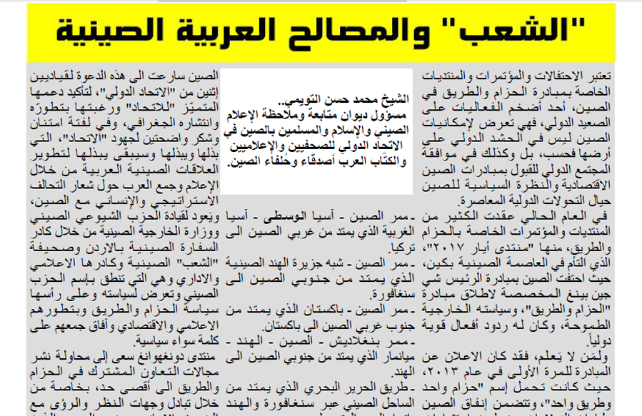 نشرة الصين بيعون عربية ـ الشيخ محمد حسن التويمي*