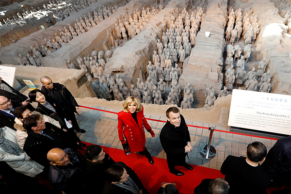 وقال مصدر من الإليزيه أن ماكرون سيزور موقع متحف تماثيل الجنود والخيول الفخارية لضريح الإمبراطور تشين شي هوانغ. كما سيلقي كلمة عن العلاقات الصينية الفرنسية.