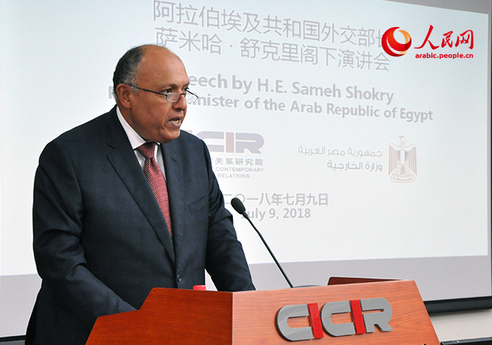 ألقى وزير الخارجية المصري سامح شكري خطابا في معهد دراسات العلاقات الدولية المعاصرة الصيني ببكين يوم الاثنين /9 يوليو/، وذلك على هامش مشاركته في الاجتماع الوزاري الثامن لمنتدى التعاون الصيني العربي المنعقد في 10 يوليو الحالي.