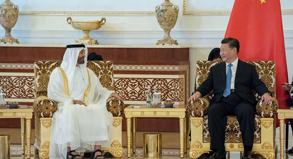 لبست معالم الامارات ألوان العلم الصيني استقبالا للرئيس الصيني شي جين بينغ. وهي أول زيارة يجريها رئيس صيني الى الإمارات منذ 29 سنة. وفي 20 يوليو، إلتقى الرئيس الصيني شي جين بينغ بكل من نائب رئيس الإمارات ورئيس الوزراء محمد بن راشد آل مكتوم وولي عهد إمارة أبوظبي الشيخ محمد زايد بن آل نهيان بالعاصمة الإماراتية أبوظبي. واتفق الجانبان على تأسيس علاقات شراكة إستراتيجية شاملة، وتعميق التعاون في مختلف المجالات، ودفع العلاقات بين البلدين إلى مستوى أعلى ومجالات أرحب.
