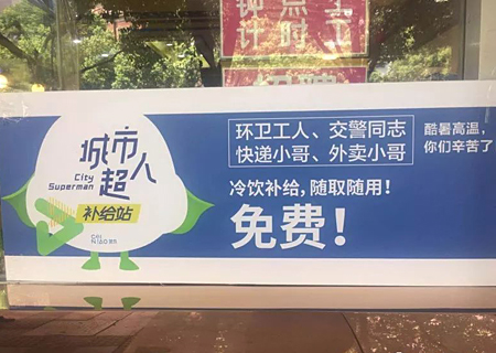 ظهرت في الآونة الأخيرة ثلاجة غير مراقبة، في شارع بمدينة هانغتشو، حيث ملء الثلاجة بالمشروبات الباردة، وكتب عليها عبارة “مشروبات مجانية للعاملين تحت أشعة الشمس “.