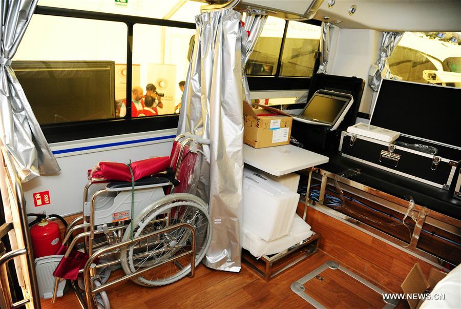 وقال وانغ كينجلي ممثل شركة ((بيكي فوتون موتور))، التي شاركت في تمويل التبرع تحت مظلة الصليب الأحمر الصيني، لوكالة أنباء ((شينخوا)) إن العيادات المتنقلة لديها أجهزة الأشعة السينية، وماسح الموجات فوق الصوتية، وجهاز إزالة الرجفان، والتشخيص عن بعد، ونظام المعالجة.