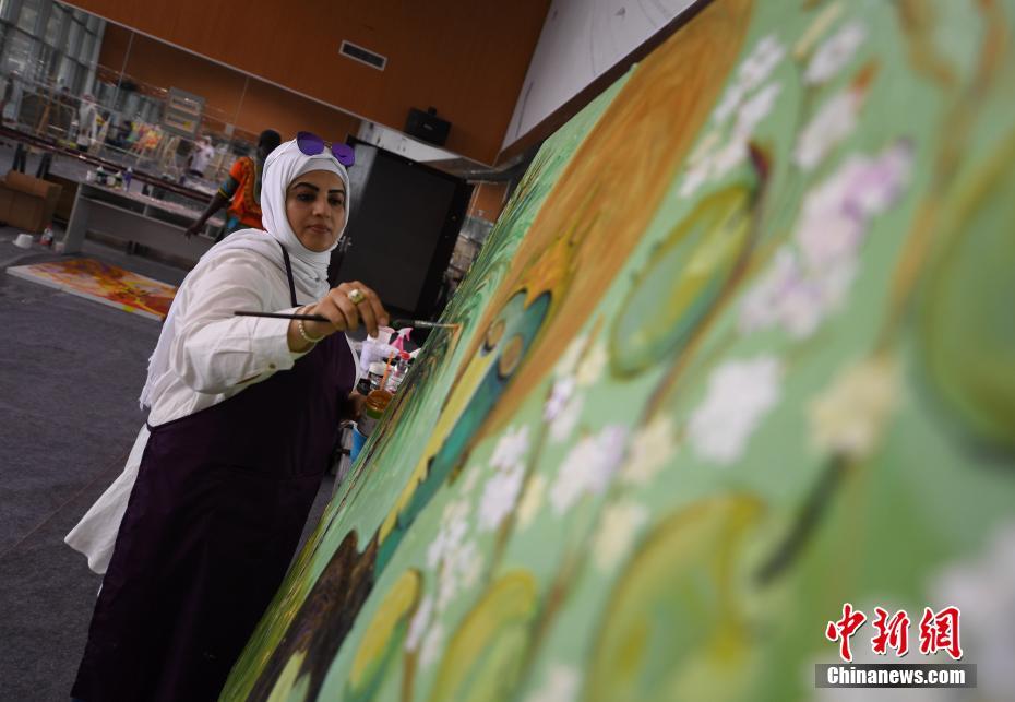 يظهر في الصورة الملتقطة 6 سبتمبر الجاري فنانة عربية بصدد القيام بالإبداع الفني في مدينة هانغتشو. وجاء 11 فنانا من الدول العربية إلى مدينة هانغتشو حاضرة مقاطعة تشجيانغ، جنوب الصين، حيث قاموا بدمج فهمهم للثقافة الصينية ومشارعهم في أعمالهم الفنية لإظهار سحر اندماج الثقافتين.