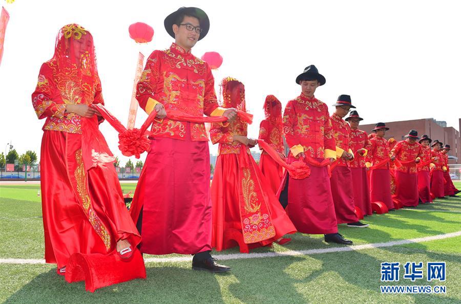 أقيمت حفلة زفاف جماعية مميزة في مدرسة شيمين التجريبية في مدينة شيجياتشوانغ حاضرة مقاطعة خبي شمالي الصين يوم 9 سبتمبر الحالي، حيث شارك في الزفاف العديد من أزواج المعلمين، بارتداء أزياء الزفاف الصينية التقليدية، من أجل الاحتفال بيوم المعلمين الـ 34 في الصين، الذى يصادف اليوم العاشر من سبتمبر.