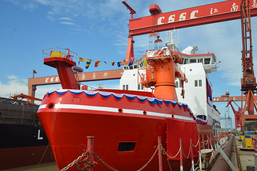 نزول أول كاسحة جليد صينية الصنع إلى الماء