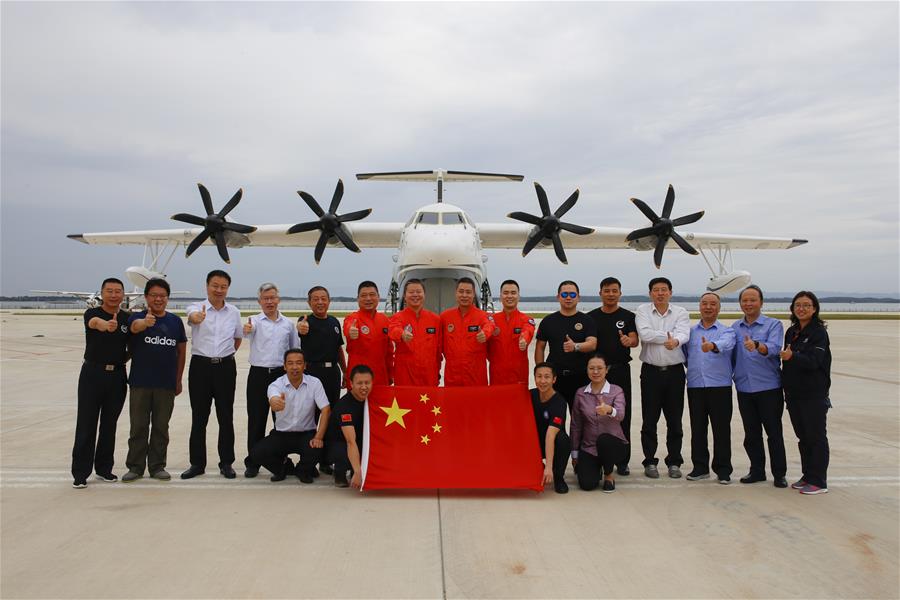 طائرة برمائية كبيرة صينية الصنع تجتاز اختبار الهبوط بسرعة على المياه