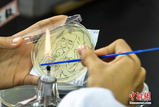طلاب صينيون يرسمون بالبكتيريا