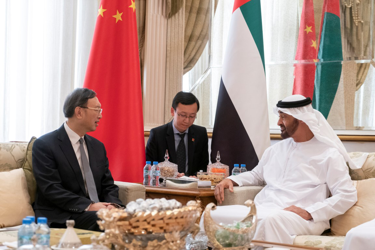 ونقل يانغ، وهو أيضا عضو المكتب السياسي للجنة المركزية للحزب الشيوعي الصيني ومدير مكتب لجنة الشؤون الخارجية باللجنة المركزية للحزب الشيوعي الصيني، خلال اللقاء تحيات الرئيس الصيني شي جين بينغ لنظيره الإماراتي الشيخ خليفة بن زايد آل نهيان، رئيس دولة الإمارات العربية المتحدة والشيخ محمد بن زايد آل نهيان ولي عهد أبوظبي.