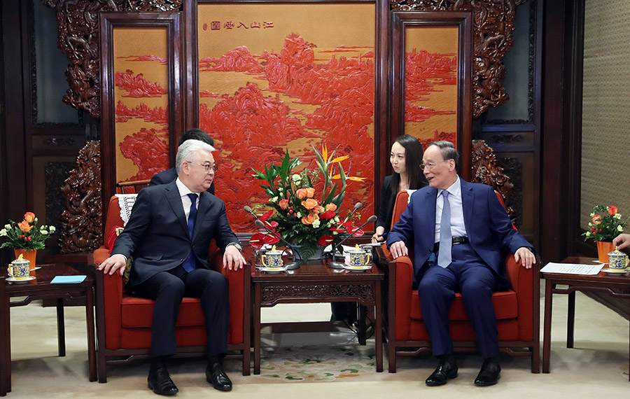 إلتقى نائب الرئيس الصيني وانغ تشي شان بوزير الخارجية القازاقي بيبوت أتامكولوف اليوم (الجمعة) في بكين.