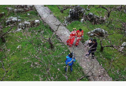 في الصور الملتقطة يوم 4 نيسان/ أبريل 2019، زوجان يحضران حفل زفاف على النمط التقليدي في محافظة شيتشيان بمقاطعة قويتشو في جنوب غربي الصين.