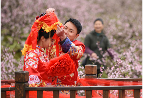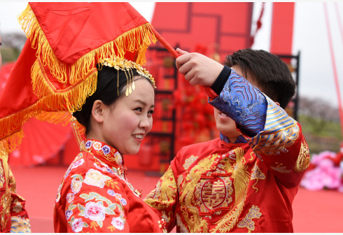 وأقيم حفل زفاف جماعي على النمط التقليدي الصيني في محافظة شيتشيان للأزواج الذين يكافحون على الخطوط الأمامية للحد من الفقر بالمحافظة.
