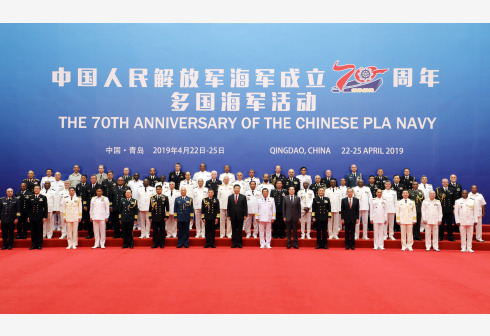 وأشار شي إلى أن الصين تتبع سياسة للدفاع الوطني ذات طبيعة دفاعية، قائلا إن سلاح البحرية التابع لجيش التحرير الشعبي الصيني سوف ينشط في مواصلة تحمل مسؤولياته الدولية وحماية أمن الطرق المائية الدولية وتقديم المزيد من المنافع العامة للأمن البحري.