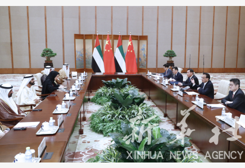 التقى رئيس مجلس الدولة الصيني لي كه تشيانغ اليوم (الخميس) مع الشيخ محمد بن راشد آل مكتوم، نائب رئيس الإمارات العربية المتحدة رئيس مجلس الوزراء الذي قدم إلى هنا لحضور منتدى الحزام والطريق الثاني للتعاون الدولي.