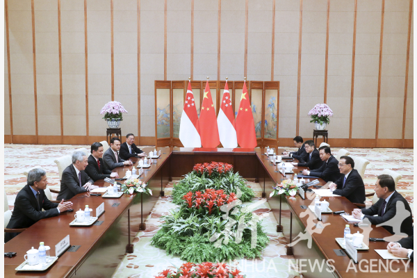 التقى رئيس مجلس الدولة الصيني لي كه تشيانغ برئيس وزراء سنغافورة لي هسين لونغ في بكين اليوم (الإثنين).