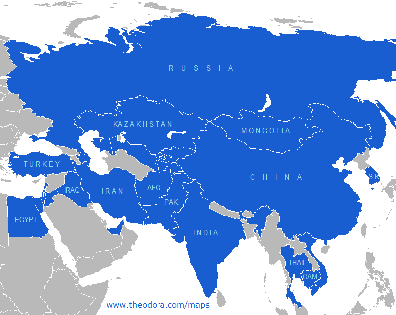 وتضم المنظمة 27 دولة كأعضاء دائمين وهي: أفغانستان، وأذربيجان، والبحرين، وبنغلاديش، وكمبوديا، والصين، ومصر، والهند، وإيران، والعراق، وإسرائيل، والأردن، وقازاقستان، وجمهورية كوريا، وقيرغيزستان، ومنغوليا، وباكستان، وفلسطين، وقطر، وروسيا، وطاجيكستان، وتايلاند، وتركيا، والإمارات العربية المتحدة، وأوزبكستان، وفيتنام، وسريلانكا.