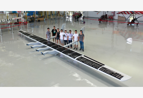 وقالت الشركة إن الطائرة التي يبلغ طول جناحيها 15 مترا، تعمل بالطاقة الشمسية فقط ويمكن أن يصل ارتفاع الطيران الأقصى لها إلى 8000 متر، وتحلق بسرعة منخفضة لمدة تصل إلى 12 ساعة في الليل بعد 8 ساعات من الشحن تحت الشمس.