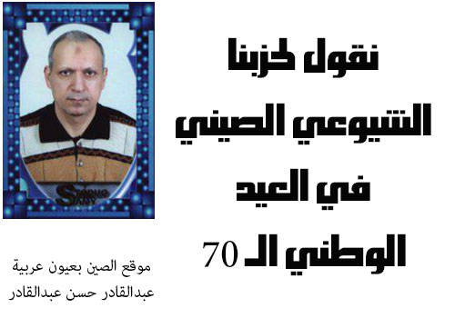 نقول لأعضاء قيادة حزبنا الشيوعي الصيني الغالي: لكم منّا كل الثناء والتقدير بعدد قطرات المطر وألوان الزهور وشذى العطر، على مجهوداتكم الثمينة والقيّمة من أجل الرقي الموصول بمسيرة الحزب القائد، وذلك بمناسبة العيد الحزبي والوطنى الـ70.
