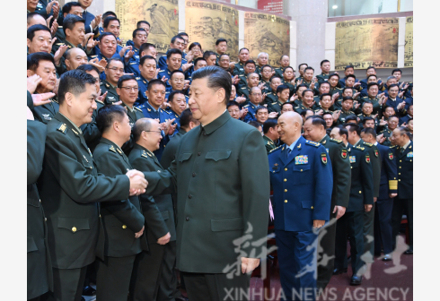 وبالنيابة عن اللجنة المركزية للحزب الشيوعي الصيني واللجنة العسكرية المركزية، نقل شي التحيات لرؤساء الأكاديميات والمدارس العسكرية وكذلك من يعملون في مجال التعليم العسكري.