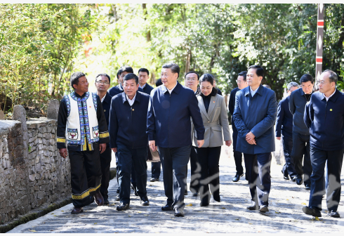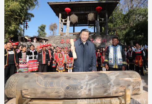ذهب شي إلى قرية تسكنها مجموعة وا القومية في مركز قرى تشينغشوي في مدينة تنغتشونغ بعد ظهر اليوم للاطلاع على جهود الحد من الفقر، وقدم التهاني للقرويين بمناسبة العام الصيني الجديد.