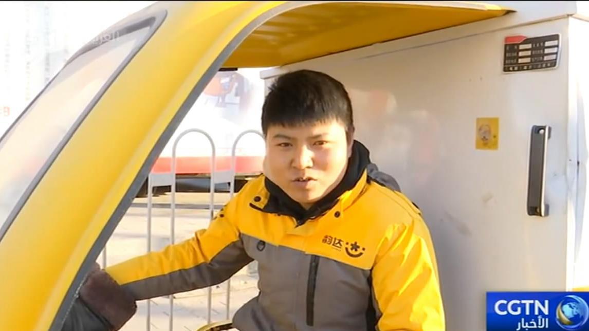 فصل الشتاء في بكين بارد وجاف، وسيزيد حجم عمل سعاة التوصيل السريع خاصة مع حلول موسم التسوق خلال الأعياد.