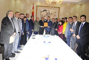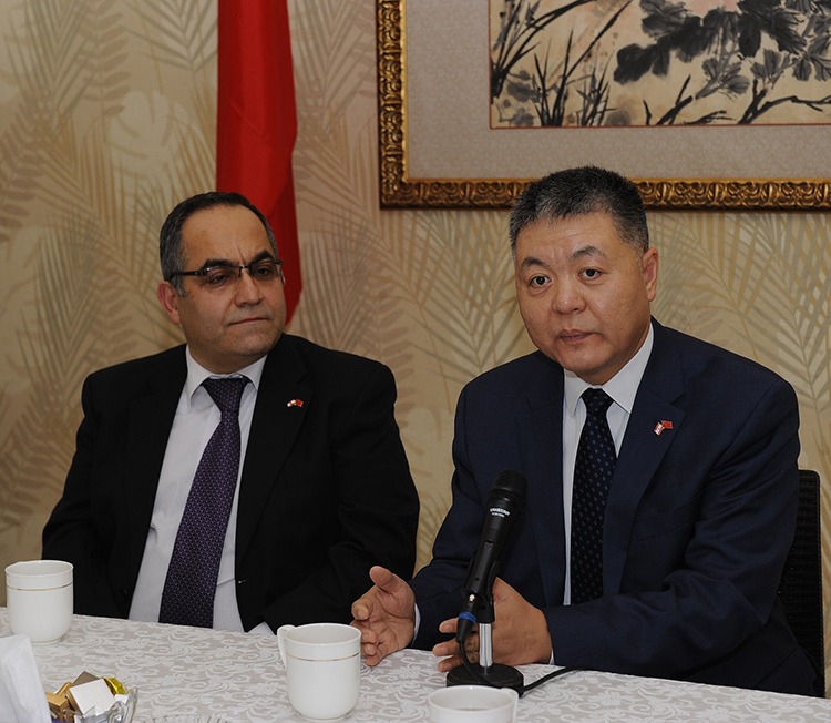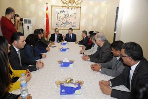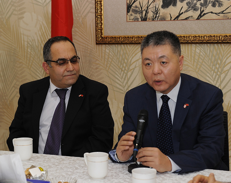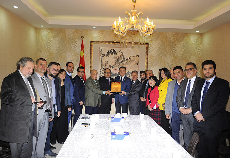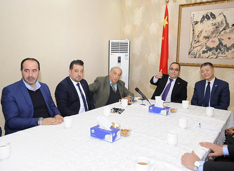 وأضاف السفير كيجيان الذي شكر الوفد على زيارته التضامنية: “نعتقد أن تأثير انتشار الفيروس على الاقتصاد سيكون مؤقتا وقصيرا”، لافتا إلى أن الشحنات البحرية الصينية لا تشكل أي خطر صحي، لأن الحقائق العلمية تثبت أن الفيروس لا يستطيع البقاء على الأسطح الجافة. وأكد أن الصين تتعاون بشكل مسؤول وشفاف مع منظمة الصحة العالمية وتتبادل معها المعلومات حول الفيروس والوقاية منه وأساليب العلاج. أما علي محمود العبدالله فقال إن الصين ستتغلب على الأزمة الحالية وهي محط ثقة الجميع، ووجه تحية تضامن إلى الشعب الصيني، معتبرا أن الصين تخوض المعركة ضد كورونا بالنيابة عن كل العالم. لكنه انتقد بشدة العنصرية ضد الصينيين والتنميط، والأساليب التي يتبعها البعض ضد الصين بينما هي منهمكة بحربها ضد كورونا. وسلّم العبدالله خلال اللقاء السفير كيجيان درعا تكريمية تعبيرا عن التضامن مع الشعب الصيني.