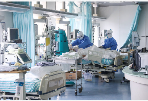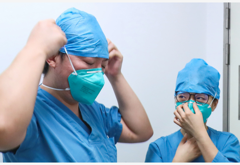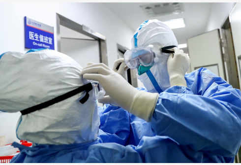 في الصور الملتقطة يوم 13 فبراير 2020، ممرض يدعى بانغ تشن (اليسار) وممرضة تدعى تشن مي رو يستعدان لدخول منطقة الوباء. وهما زميلان في قسم الرعاية المركزة بمستشفى ديتان ببكين، وزوجان في الحياة العادية. وتم تخصيص المستشفي التي يعملان بها ضمن مستشفيات اخرى لعلاج المرضى المصابين بفيروس كورونا الجديد ببكين. أما في عيد الحب هذا، سيعملان معا لرعاية المرضى. وقال بانغ إننا نجتهد لتحقيق هدف واحد وهو علاج المرضى وشفائهم.