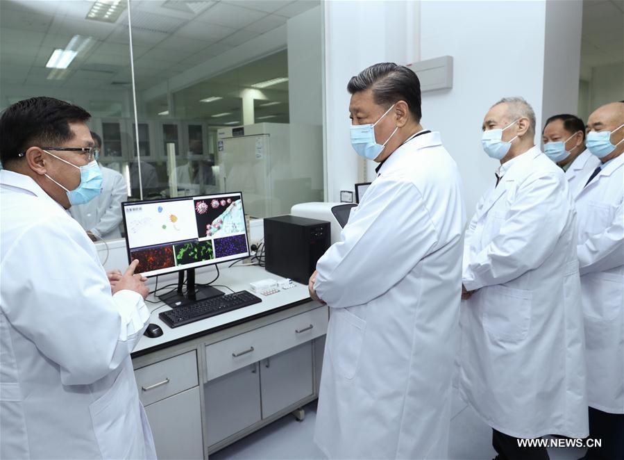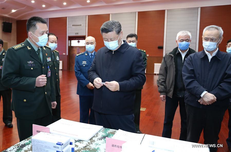 وبعد ظهر اليوم الاثنين، ذهب شي إلى أكاديمية العلوم الطبية العسكرية، حيث استمع إلى تقرير عن البحث العلمي بشأن كوفيد-19 لدى الأكاديمية. كما تفقّد مختبر أبحاث طب الطوارئ الخاص بحالات التفشي الكبيرة.