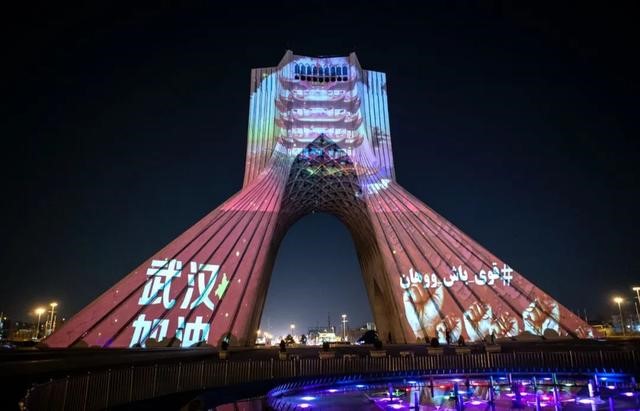 في بداية اندلاع الوباء بالصين، مدّت إيران يد العون بكل السرعة: يوم الأول من فبراير/ شباط وصَلَت إلى الصينَ المليونُ كمامة التي جمعتها جمعية الهلال الأحمر الإيراني؛ ويوم الثالث من فبراير/ شباط أعرب وزير الخارجية الإيراني ظريف عن تضامن إيران مع الصين، قائلا: “إيران تقف بحزم مع الصين دائما”، واقتبس بيتا من «كتاب الأغاني» القديم الصيني: “لا تقلق على نقصان الكساء، لأعطك ثوبي دفاعا لك عن برد الشتاء”. ويوم 13 فبراير أوصلت إيران الدفعة الثانية من الكمامة الطبية إلى الصين. وفي مساء يوم 18 فبراير، رفع برج الحرية في طهران شعارات تشجيع باللغات الصينية والفارسية والإنجليزية: “شدّي حيلك يا ووهان، شدّي حيلك يا صين!”
