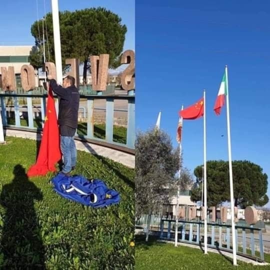 - استبدال عَلم الإتحاد الأوروبي في بعض المناطق الإيطالية، بالعلَمين الصيني والروسي.