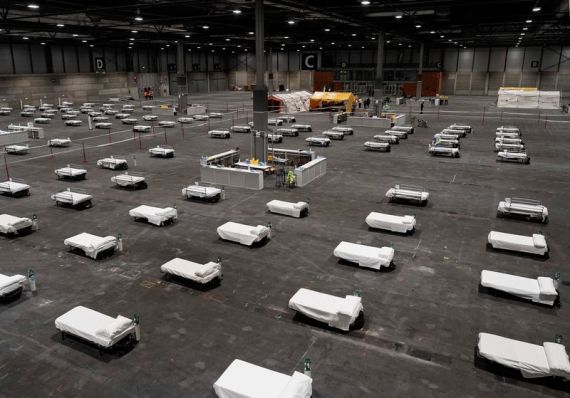 صورة التقطت في 21 مارس 2020 للمستشفى الميداني الذي تم إنشاؤه في مركز IFEMA للمعارض في مدريد بإسبانيا
