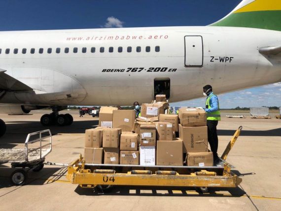 ونُقلت الإمدادات من بكين إلى هراري على متن طائرة مستأجرة تابعة لطيران زيمبابوي يوم الاثنين.