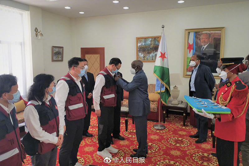 وفي حفل أقيم يوم الأحد في العاصمة جيبوتي، منح كامل محمد ميداليات يوم الاستقلال للفريق الطبي الصيني، مشيدا بجهود أعضائه في محاربة كوفيد-19 في هذه الدولة الواقعة في القرن الأفريقي.