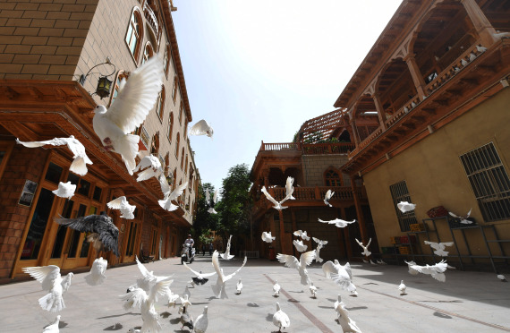 تجديد البلدة القديمة في مدينة هوتان بمنطقة شينجيانغ الويغورية ذاتية الحكم بشمال غربي الصين