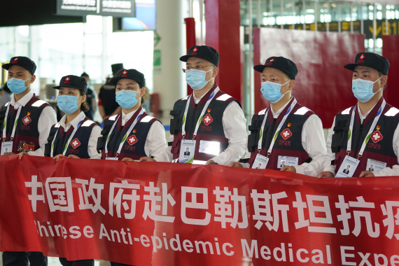 وصل وفد طبي من جمهورية الصين الشعبية يوم الأربعاء إلى الأراضي الفلسطينية على متن طائرة صينية خاصة محملة بمساعدات طبية مختلفة لمكافحة مرض فيروس كورونا الجديد (كوفيد-19).