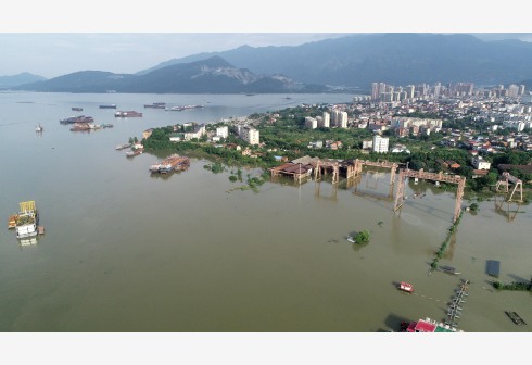 ارتفع منسوب المياه في محطة تشنغلينغجي للمياه، فوق مستوى التحذير ليبلغ 32.5 مترا في 4 يوليو، وواصل الارتفاع. وتتوقع المحطة أن يصل مستوى المياه إلى الذروة وهى 34.65 متر يومى 13 إو 14 يوليو.